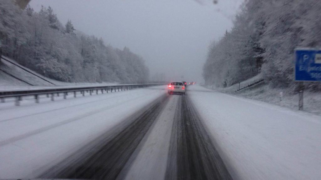 Wenn man früh morgens am Palmsonntag, also 1 Woche vor Ostern, zu einem Event aufbricht und dabei in ein Schneechaos gerät, kann man nur hoffen, dass die Winterreifen noch drauf sind. Mein Fahrer hatte sie noch drauf! 🙂